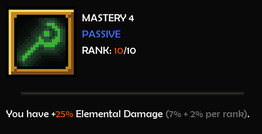 It’s “free” ele res, since no other passiv on those lines are great for us. (You can drop the 25% ele dmg buff for “From bones to Ballista” if you want too, more on Perks and Passives)